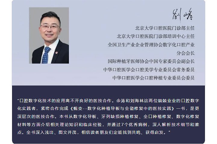 7月11日,由愛爾創(chuàng)支持的《蛻變-數(shù)字化種植導(dǎo)板與全瓷修復(fù)中的醫(yī)技實(shí)踐》書籍,在數(shù)字化口腔學(xué)術(shù)大會(huì)中隆重發(fā)布。